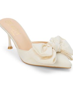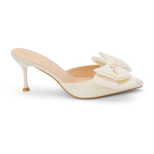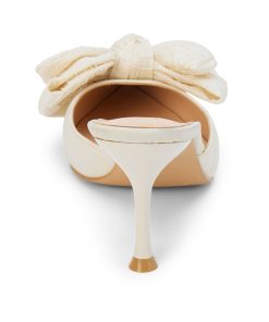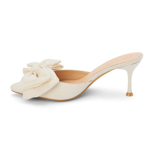 Vegan pointed-toe mule with sculpted heel and oversized knotted bow.