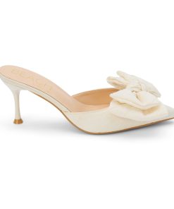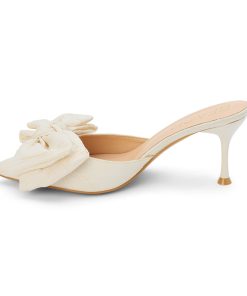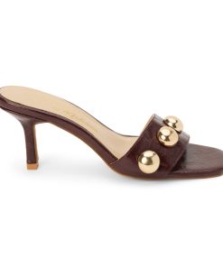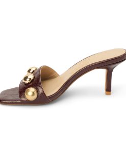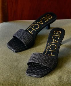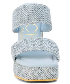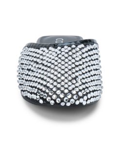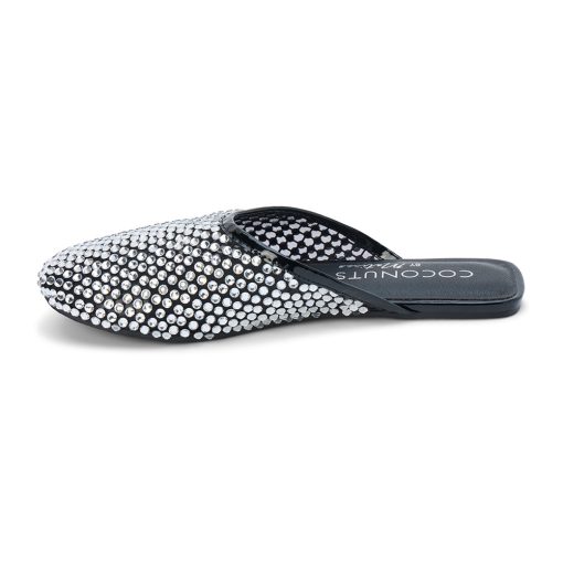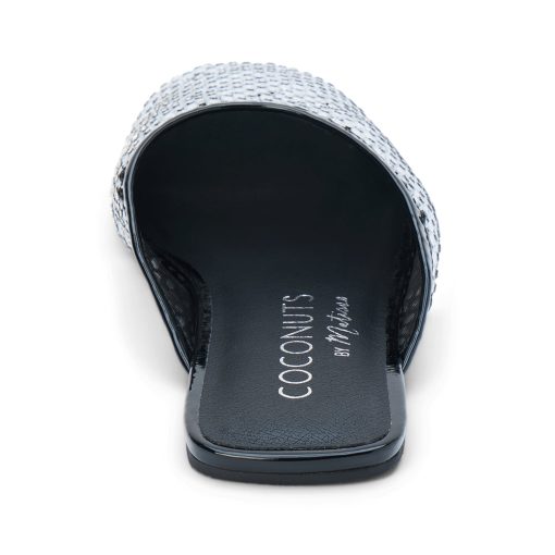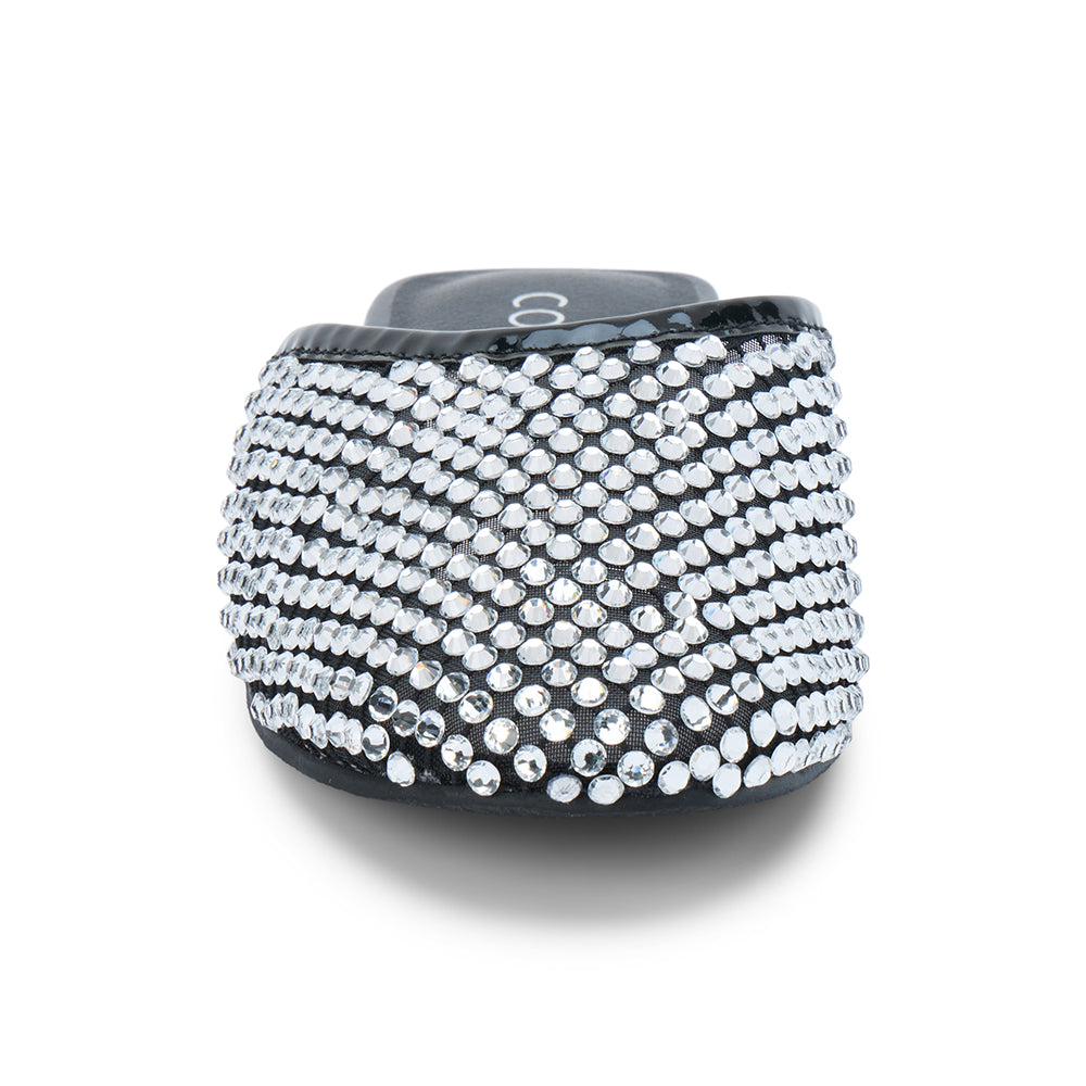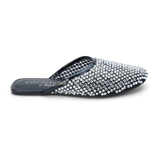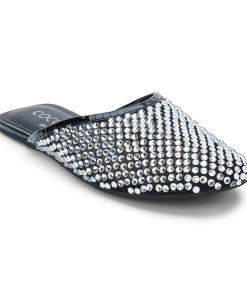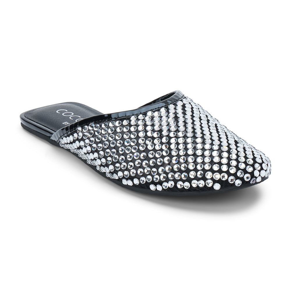 Vegan mesh slip-on mule with allover crystal rhinestones and almond toe.