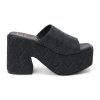 Vegan, platform heeled sandal with scallop and cut-out detail.