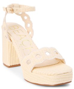 Vegan, platform heeled sandal with scallop and cut-out detail.