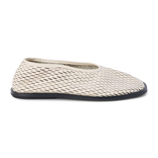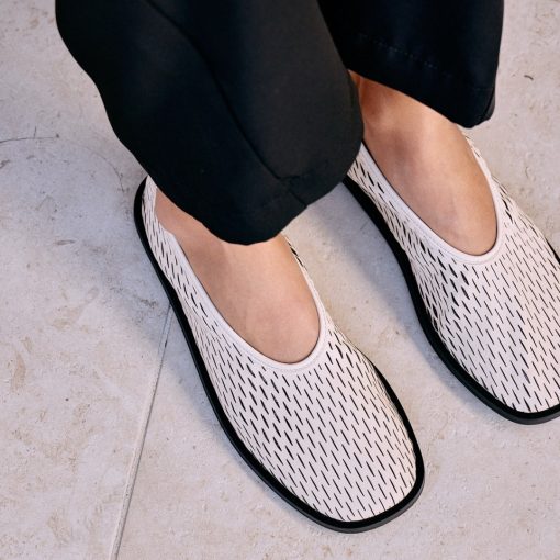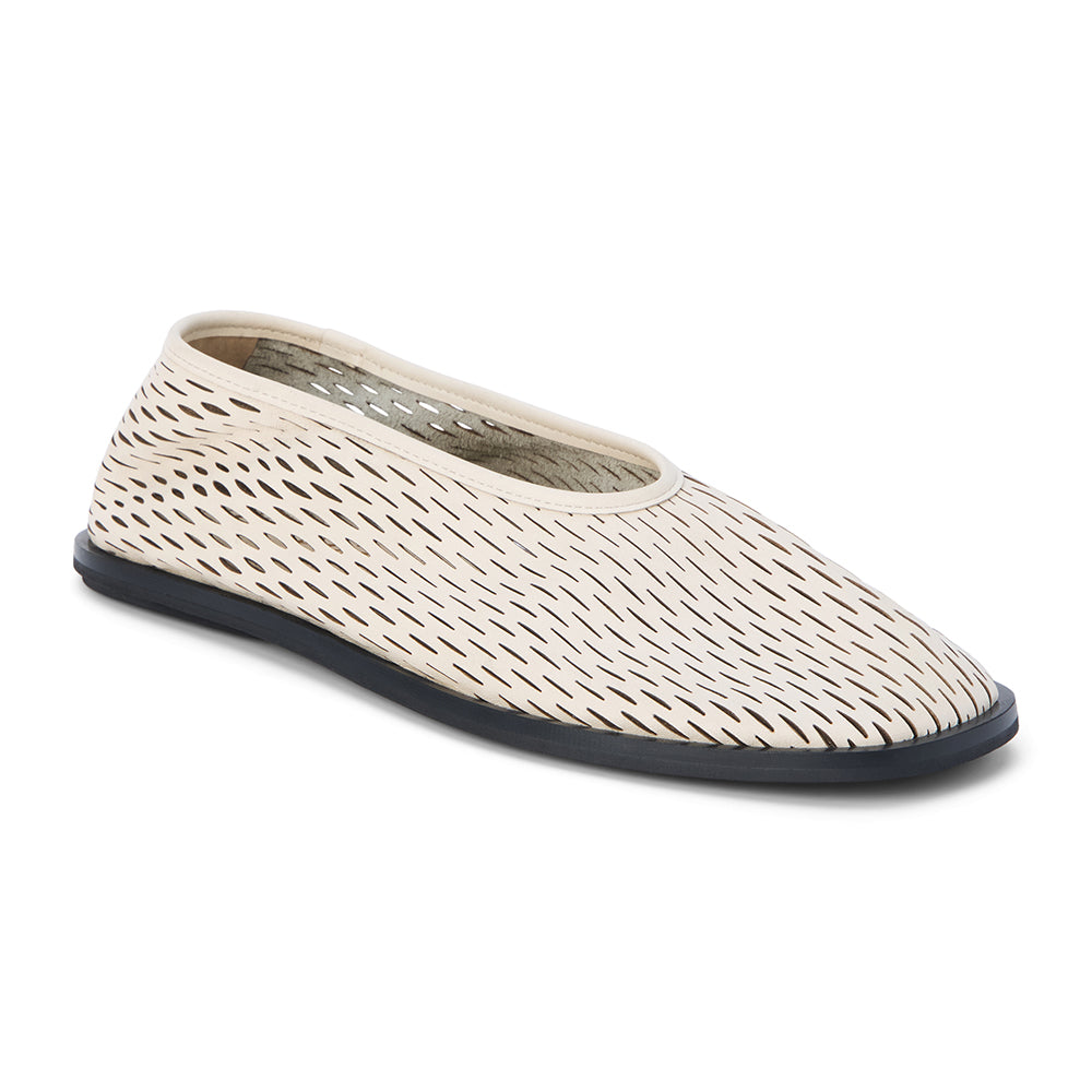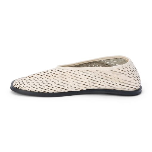 Perforated leather flat with squared toe.