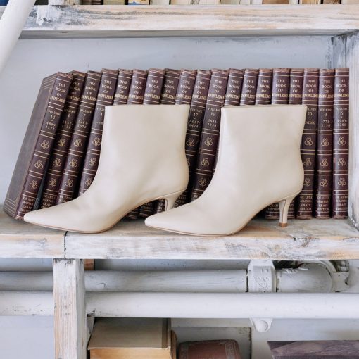 Stiletto heeled ankle boot with an almond-shaped toe.